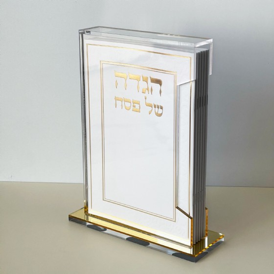 🎉 חדש ומיוחד: הגדת פסח יוקרתית בעיצוב מודרני עם מעמד פרספקס איכותי, מושלמת לשולחן הסדר או כמתנה חגיגית.